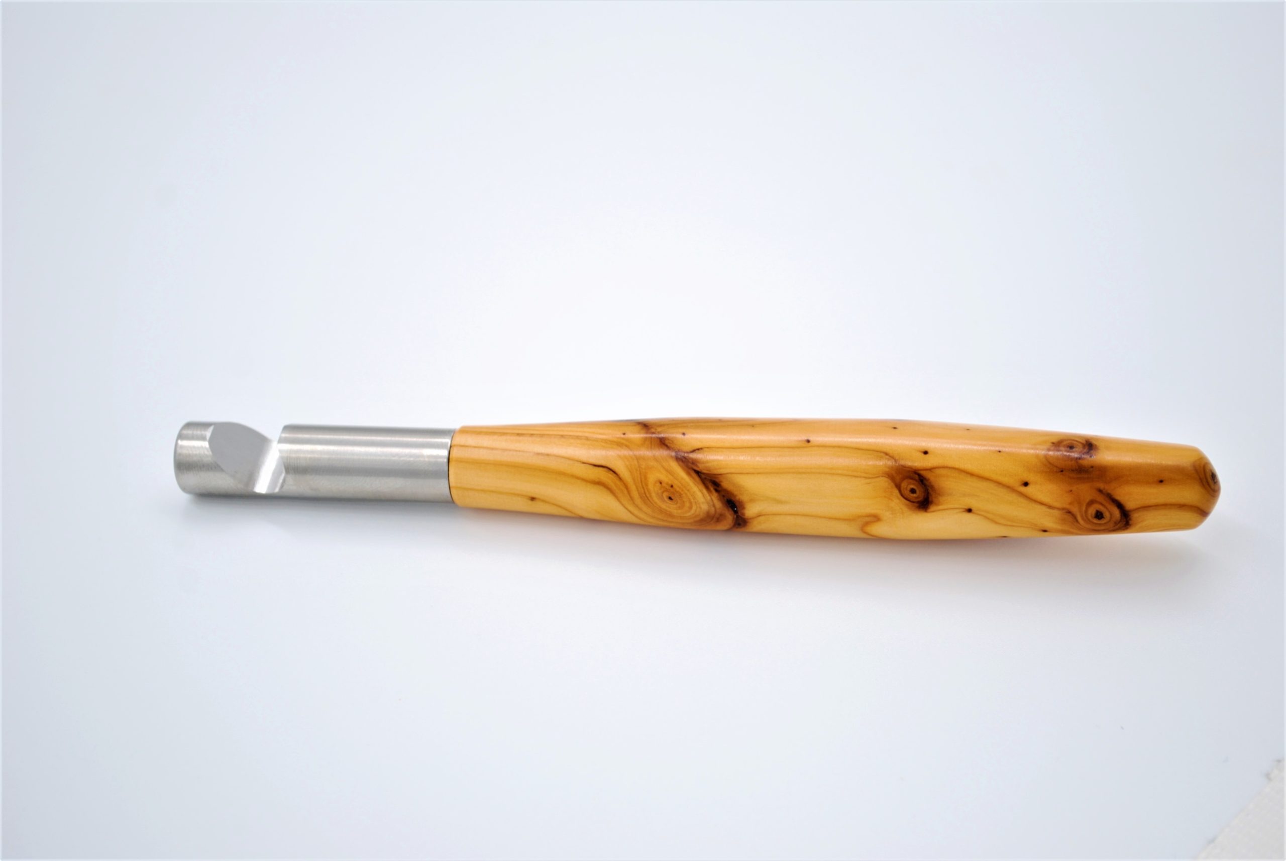 Die Eibe zählt bei uns in Europa zu einem eher raren Holz. Der Grund dafür liegt hierbei, weil sie früher aufgrund ihrer Härte, sehr gerne für den englischen Langbogenbau verwendet wurde. Deshalb darf dieses Holz nur aus vereinzelten Gründen, wie zum Beispiel aus Baulichen Gründen etc., geschnitten werden was die Anschaffung erschwert. Noch hinzu kommt das die Eibe ein sehr langsam wachsender Baum ist. Die Eibe enthält teilweise sehr viele kleine Verästelungen, was man auch als Augen bezeichnet und sie dann den Beinamen Maser Eibe erhält. Mit der lagerfeuerroten Färbung des Holzes und den vielen Augen zählt sie somit zu einer unserer schönsten Holzarten!