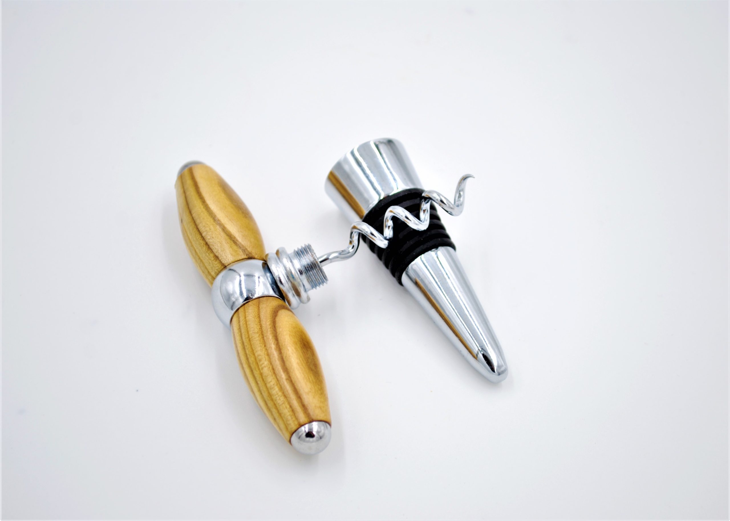 Dieser Korkenzieher wurde aus einem Essigbaum handgedrechselt. Der Essigbaum hat eine wunderschöne grüne Farbe mit einem linearen Maserverlauf. Die Oberfläche wurde lackiert und ist somit vor Abnutzung geschützt.